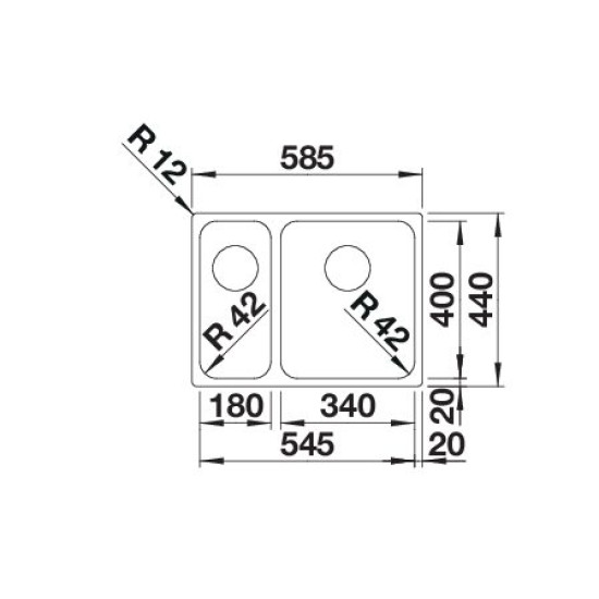 Blanco SOLIS 340/180-U b. exc.n. InFino 526129 Rozsdamentes acél mosogatótálca