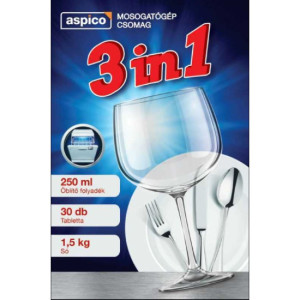 250 ml öblítőszer;1,5 kg só;30 db tabletta egységcsomagban..