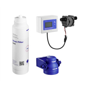 Tartalmaz egy Soft L szűrőbetétet (1800 liter kapacitás), szűrőfejet és átfolyásmérőt, amely mutatja a fennmaradó kapacitását a szűrőnek..